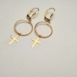 Kolczyki wykonane z żółtego 14 karatowego złota. Kółka o średnicy 1,5cm zakończone krzyżykiem.